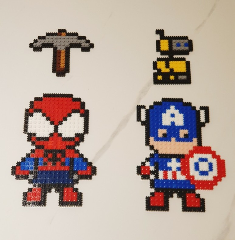 인터넷에서 도안을 참고한 히어로들과 망치, 그리고 도안에 있던 로봇.
